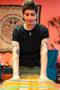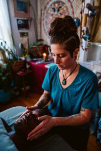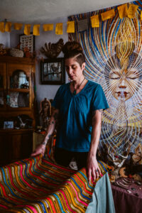 I come from a long lineage of women healers who work with Earth’s elements, the ancestors, our hands & hearts – devoted to nurturing self-love, family & community. Growing up I studied & played the piano for 10 years & throughout high-school & college I dove into being a ceramic artist. After that I found my way into fiber art & jewelry making, where I still focus my creative energy. Through crocheting & weaving jewelry with crystals, I entered into the realms of healing & more of my gifts began to emerge. I have trained with many practitioners & teachers over the last 16 years, human & beyond human, & I am deeply grateful for the knowledge shared with me. As well as my continued remembering of what I carry in my bones through study, ceremony, initiation & practice. The healing sessions that I craft for my clients are immersive, sensory-rich, powerful journeys that are ceremonial & blend together all of my experience as an artist & space holder. Those earlier years playing the piano & sculpting with clay made my hands very strong, sensitive, intuitive & wise.